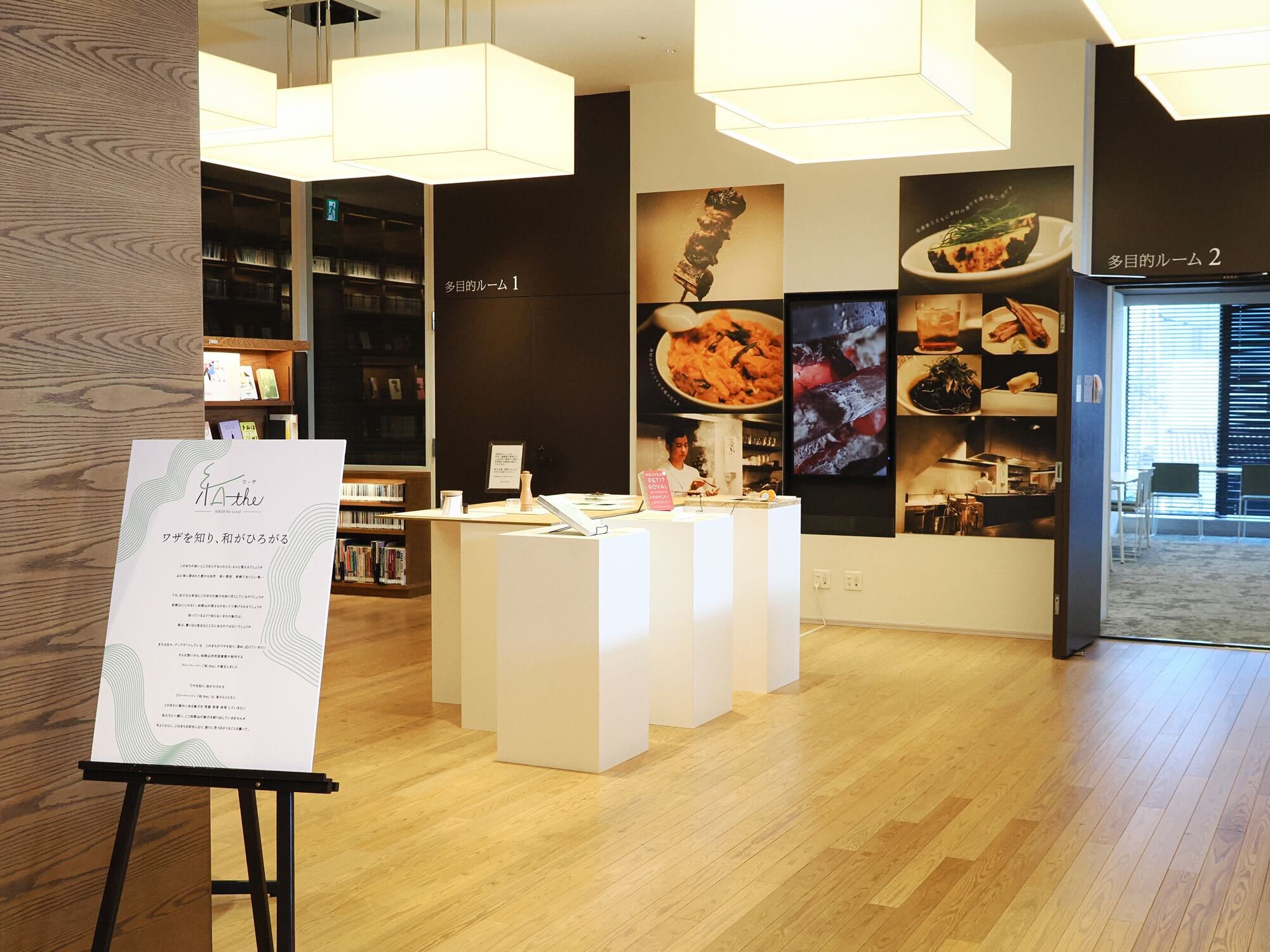 2階多目的ルーム前にて「図書館がつくる フリーペーパー『和 the』展 vol.2」が開催中です!